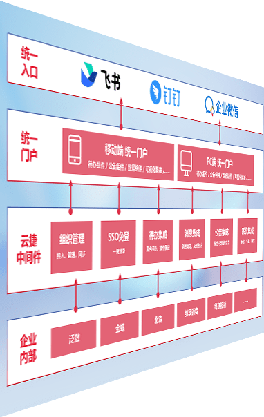 对协作平台提供支持服务,,支持企业应用与协作平台对接,,包含组织同步、、、、消息集成、、、、待办集成等。。。。支持目前主流的协作平台:钉钉、、、企微和飞书。。。。