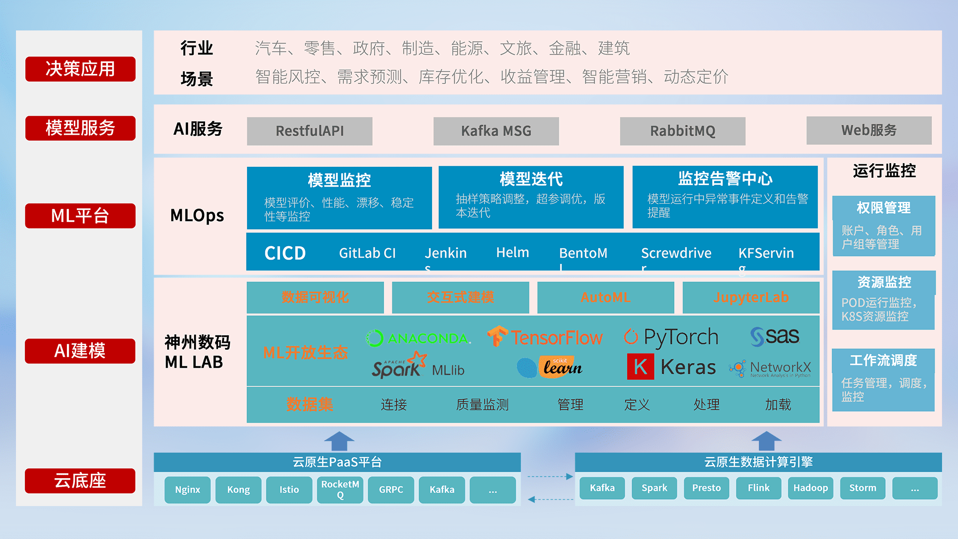 数据+模型双引擎驱动,,,面向智能服务场景,,,,快速灵活利用AI技术,,,支持业务决策,,,助力企业智能化转型破局。。